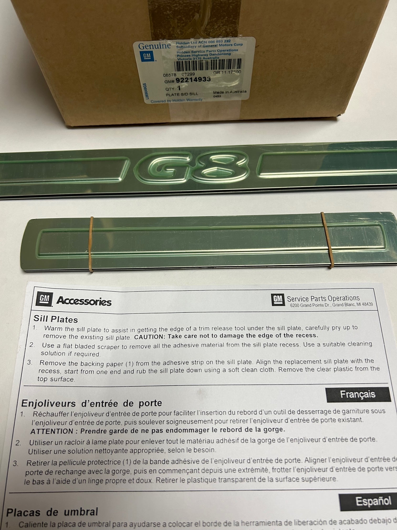 Brand new OEM GM scuff plates for the Pontiac G8. These are discontinued but we have them available. Please note the green tint is due to the protective film on them. These are chrome underneath. |
